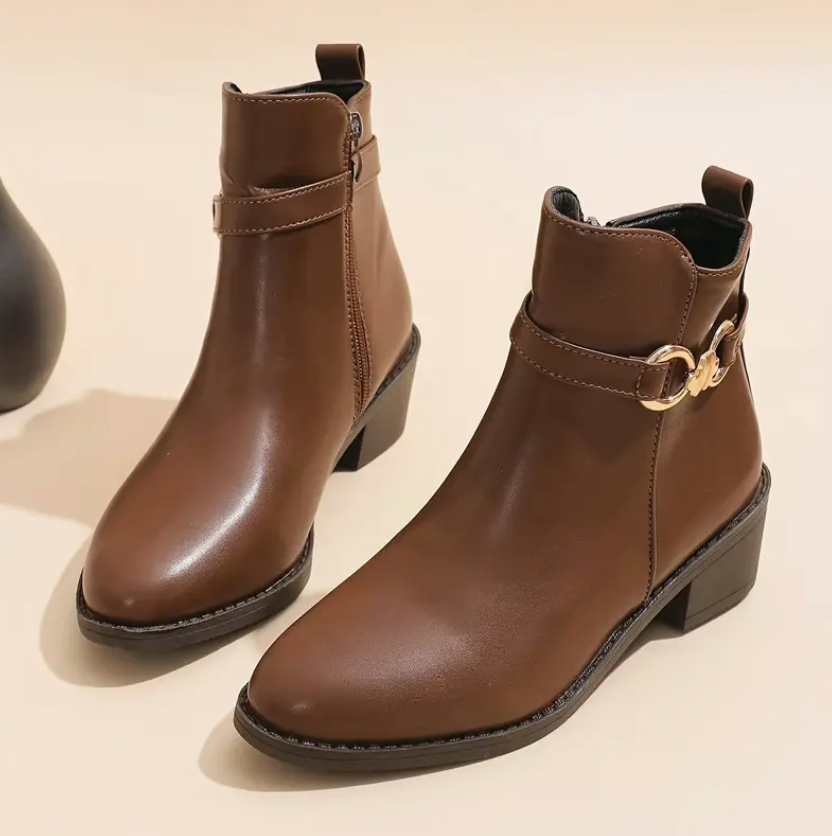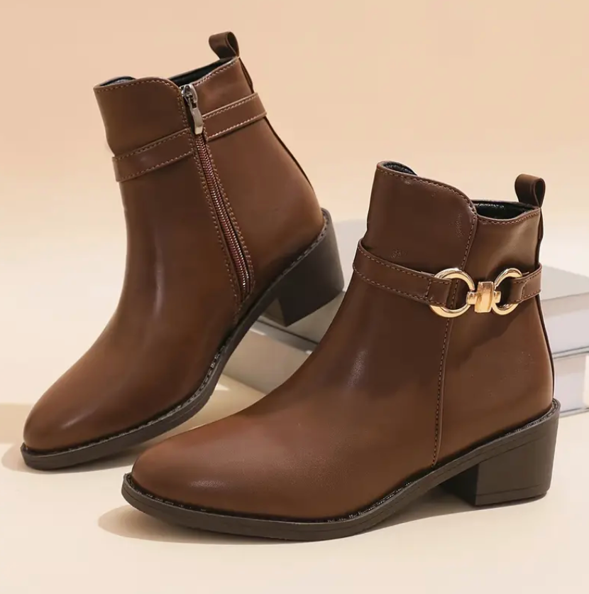 痛み軽減効果のある女性用ブラウンアンクルブーツ